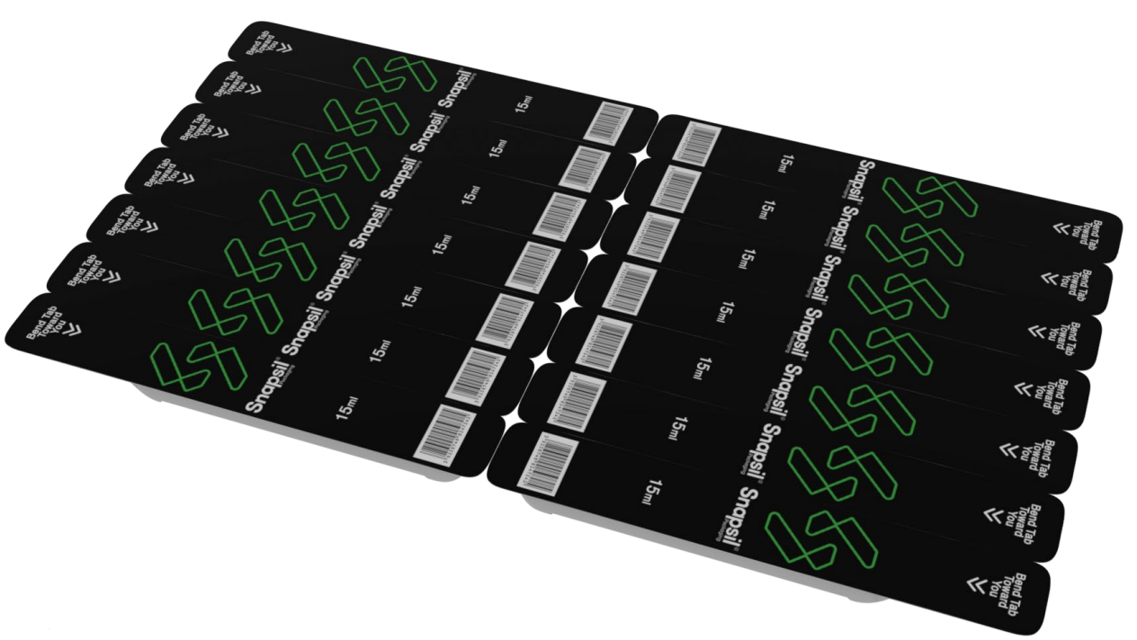 Firm, non-squeezable single-use snap stick. Best for consistent portion sizes and clean snap-open.